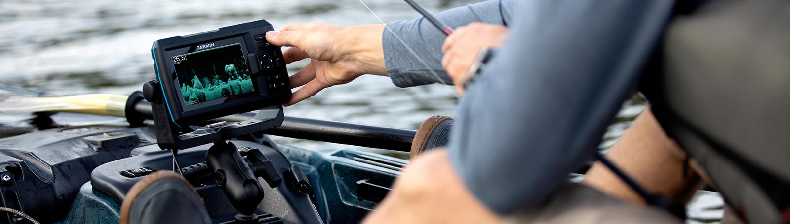 Модель оснащена чётким цветным экраном диагональю 5 дюймов с яркой подсветкой, который остаётся отлично читаемым при ярком солнечном свете или низкой освещённости. Благодаря интуитивному интерфейсу управление эхолотом простое и понятное даже для новичков — все важные функции доступны в один клик.