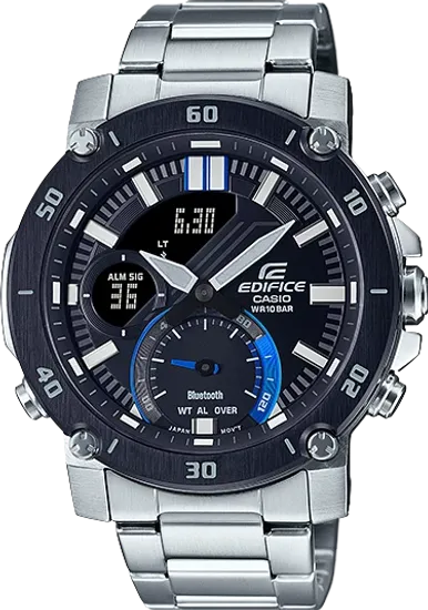 Мужские часы Casio Edifice ECB-20DB-1A — стильный аксессуар из нержавеющей стали. Они весят всего 65 г, идеально сидят на руке благодаря компактному корпусу (48,6 х 49,5 х 12,5 мм). Выдерживают погружение под воду до глубины 100 м. Питаются от надёжного кварцевого механизма. Укомплектованы полиуретановым браслетом. Особая гордость модели — минеральное стекло и подсветка стрелок + дисплея.