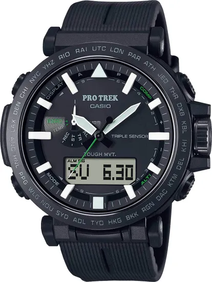 Мужские часы Casio Pro Trek PRW-6621Y-1E — стильный аксессуар, который станет вашим надежным спутником в любых условиях! Корпус из стали + полимера обеспечивает долговечность, а вес всего 65 г делает ношение комфортным. Благодаря водонепроницаемости до 200 метров вы можете погружаться под воду без риска повредить механизм. Дизайн сочетает элегантность стрелок и информативность ЖК-дисплея, которые подсвечены необритовыми стрелками для удобства использования даже ночью.