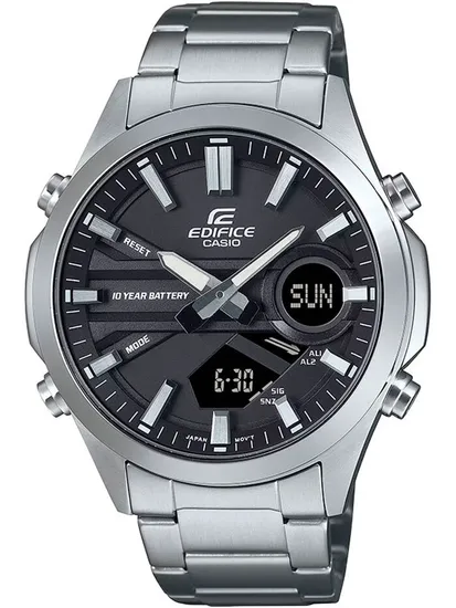 Выбирая наручные часы Casio EFV-C120D-1A, вы получаете качество и стиль от известного японского бренда. С гарантией на 1 год, эти часы станут надежным аксессуаром на каждый день. Благодаря стали, из которой сделан браслет, они будут служить вам долго и сохранят свой внешний вид даже при активном использовании. Встроенная подсветка Neobrite обеспечит отличную видимость циферблата в любое время суток. Минеральное стекло устойчиво к царапинам и повреждениям. Часы имеют стрелочно-цифровой циферблат, что добавляет им функциональности и удобства использования. Механизм часов — кварцевый, а водозащита составляет WR100 (подходит для плавания). Эти мужские часы коллекции Edifice выполнены в стильном дизайне и идеально подойдут как подарок себе или близким.