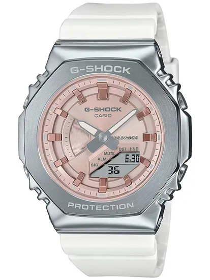 Выбирая наручные часы Casio GM-S2100WS-7A, вы получаете качество и надежность от известного японского бренда. С коллекцией G-Shock вы приобретаете аксессуар, сочетающий стиль и функциональность: минеральное стекло, полимерный браслет, диодную подсветку и стрелочно-цифровой циферблат. Благодаря водозащите WR200 (20 атм) эти часы подойдут как для повседневного ношения, так и для активных водных видов спорта. Готовы покорять новые вершины? Тогда выбирайте Casio!