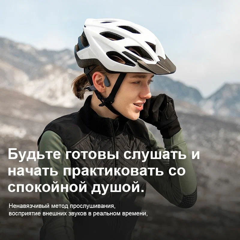 - Открытая конструкция: Благодаря технологии костной проводимости наушники оставляют уши открытыми, позволяя оставаться в курсе окружающей обстановки, что повышает безопасность при занятиях спортом на открытом воздухе.